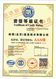 尚語翻譯是AAA級質量服務信譽單位